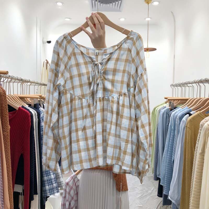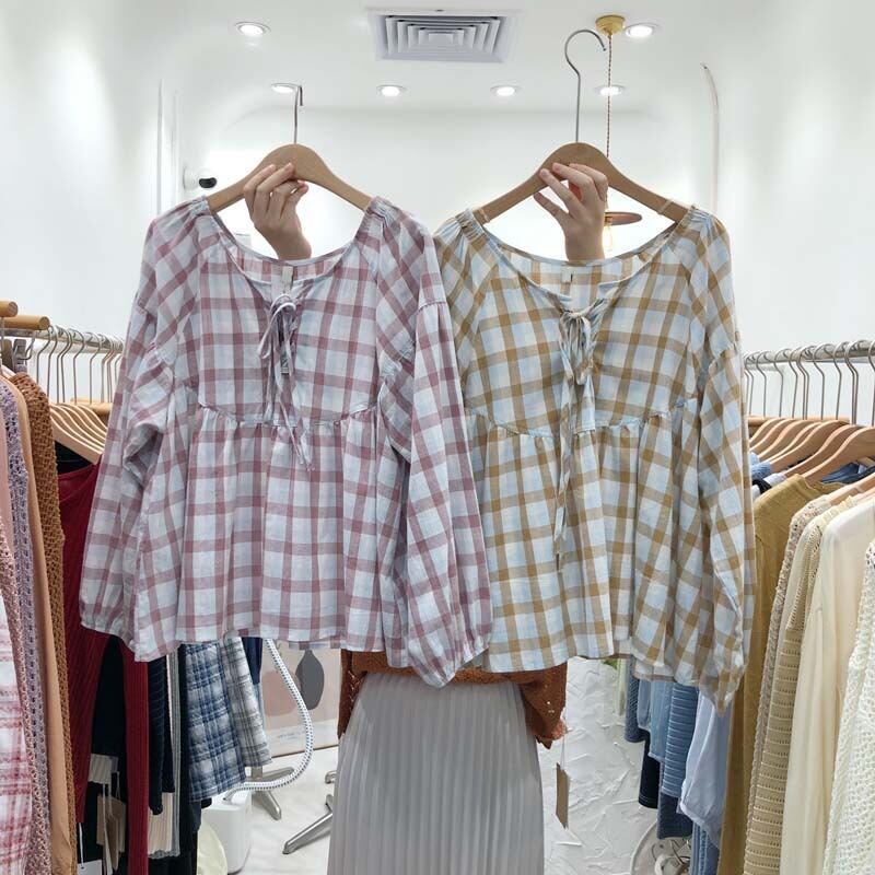 新品 チェック柄カジュアルトップス スウィート ⦿韓国 オルチャン K-pop アイドル ジャケット スーツ ワンピース カーディガン ニット フーディー トレーナー キャミソール スカート シャツ ブラウス 5B8670982