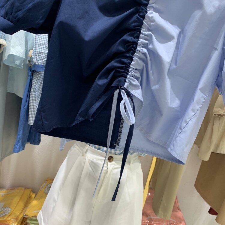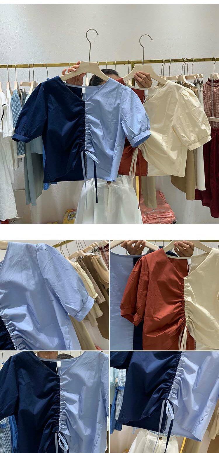 新品 サマーカラー♥カワイイ♥スリーブギャザーVネックショートシャツブラウス 夏物 ⦿韓国 オルチャン K-pop アイドル ジャケット スーツ ワンピース カーディガン ニット フーディー トレーナー キャミソール スカート シャツ ブラウス 5B6601625