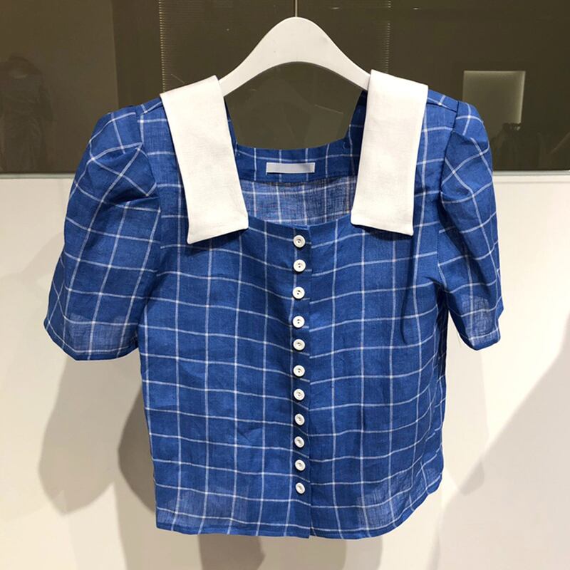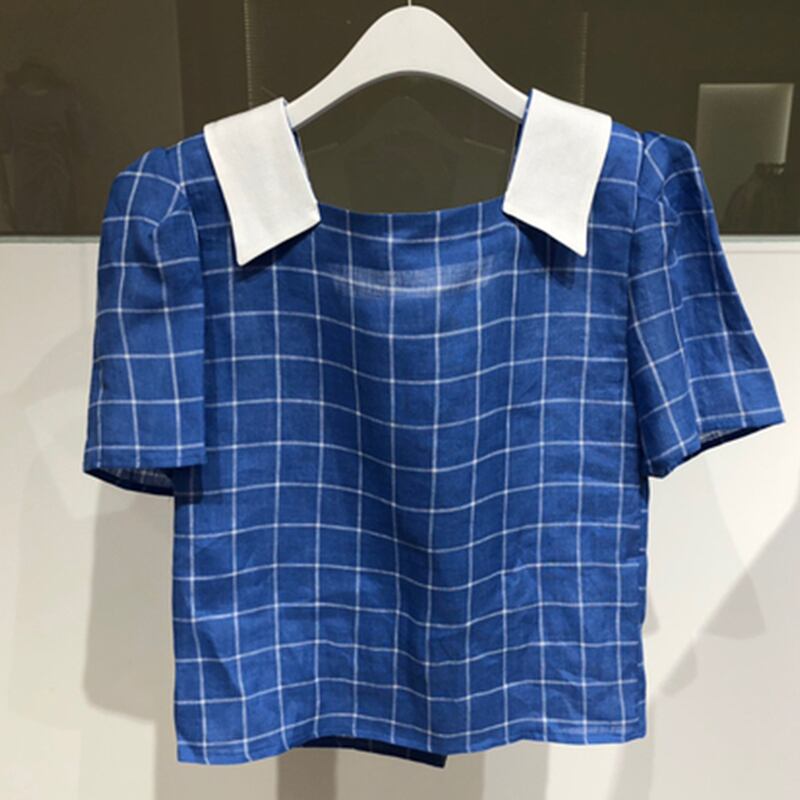 新品 カラーシャツブラウス大人女子☆チェック柄スリーブトップス スクウェア ⦿韓国 オルチャン K-pop アイドル ジャケット スーツ ワンピース カーディガン ニット フーディー トレーナー キャミソール スカート シャツ ブラウス 5B1209983