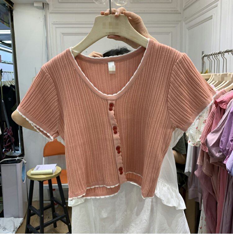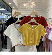 新品 サイドラウンドネック♥カワイイ♥ショートニットトップス ⦿韓国 オルチャン K-pop アイドル ジャケット スーツ ワンピース カーディガン ニット フーディー トレーナー キャミソール スカート シャツ ブラウス 5B9501471