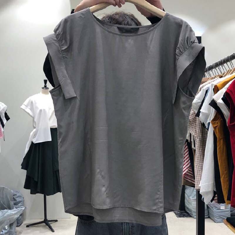 新品 ラウンドネック白♥カワイイ♥ノースリーブカジュアルシャツブラウス ホワイト ⦿韓国 オルチャン K-pop アイドル ジャケット スーツ ワンピース カーディガン ニット フーディー トレーナー キャミソール スカート シャツ ブラウス 5B0374714
