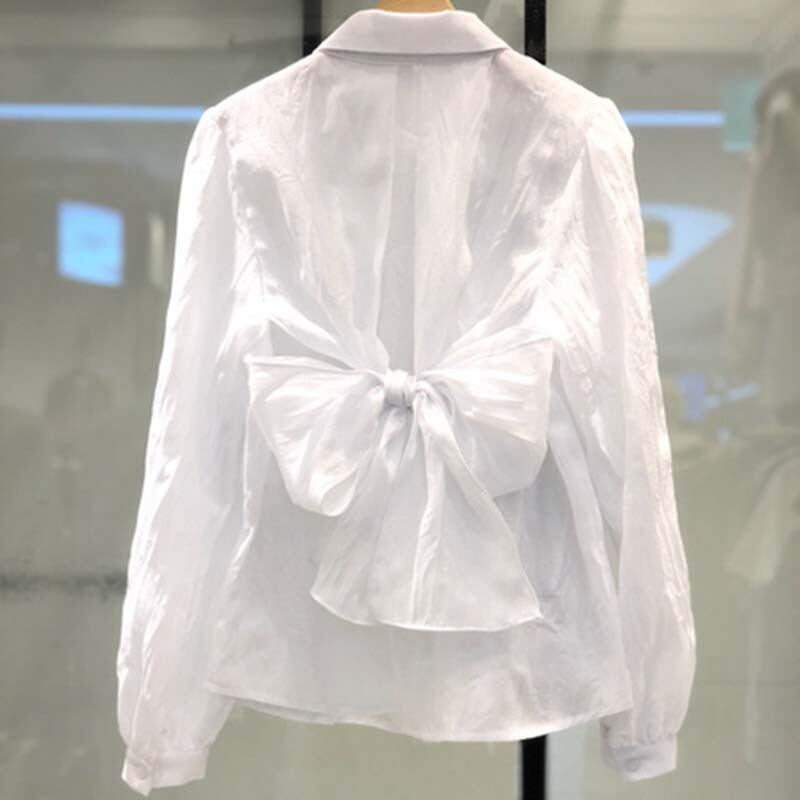 新品 バックリボン♥カワイイ♥長袖スリーブシャツブラウス大人女子☆ ロング ⦿韓国 オルチャン K-pop アイドル ジャケット スーツ ワンピース カーディガン ニット フーディー トレーナー キャミソール スカート シャツ ブラウス 5B8526239