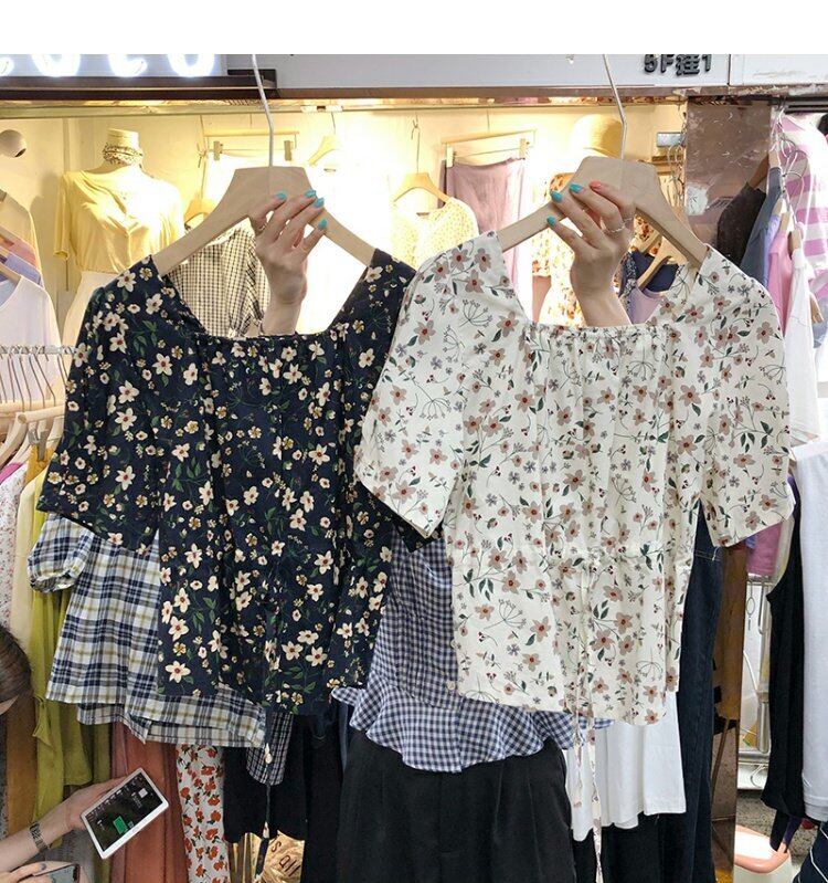 新品 花柄ギャザートップス 大人女子☆ スウィート ⦿韓国 オルチャン K-pop アイドル ジャケット スーツ ワンピース カーディガン ニット フーディー トレーナー キャミソール スカート シャツ ブラウス 5B6950261