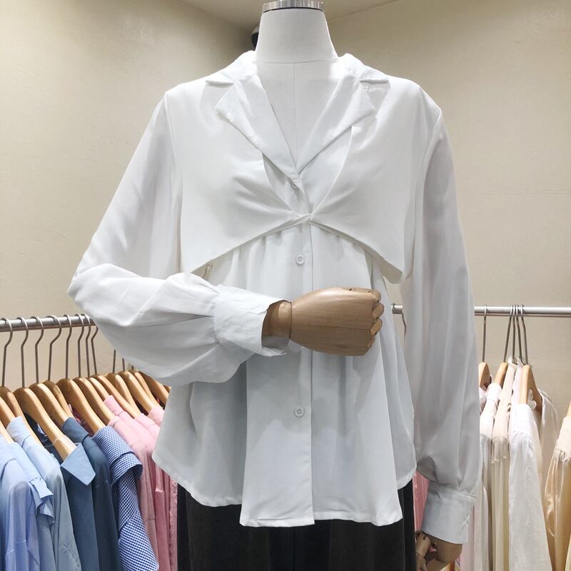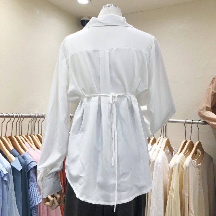 新品 ソリッド カラーVネックシャツブラウス ロング ソリッドカラー ⦿韓国 オルチャン K-pop アイドル ジャケット スーツ ワンピース カーディガン ニット フーディー トレーナー キャミソール スカート シャツ ブラウス 5B1594188