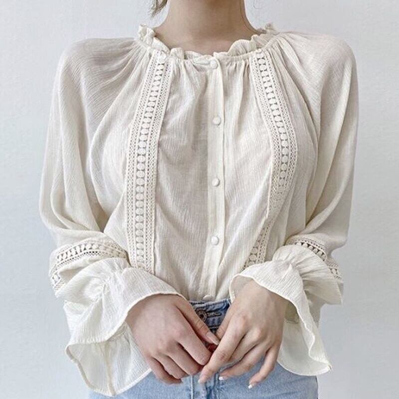 新品 ラウンドネックレーススリーブシャツブラウストップス 大人女子☆ ステッチ ⦿韓国 オルチャン K-pop アイドル ジャケット スーツ ワンピース カーディガン ニット フーディー トレーナー キャミソール スカート シャツ ブラウス 5A6673072