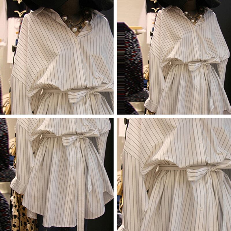 新品 ストライプシャツブラウス★ショートスカート ⦿韓国 オルチャン K-pop アイドル ジャケット スーツ ワンピース カーディガン ニット フーディー トレーナー キャミソール スカート シャツ ブラウス 5B0560707 | K clothig adult