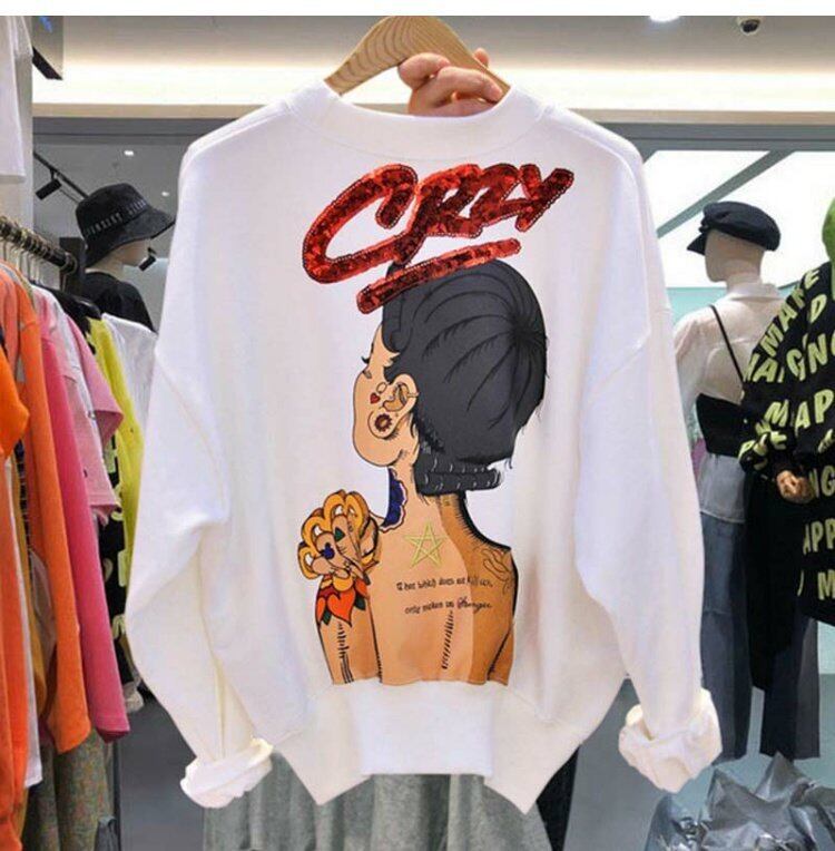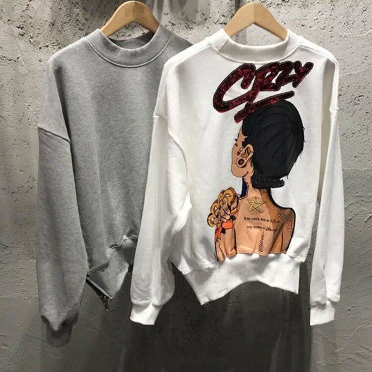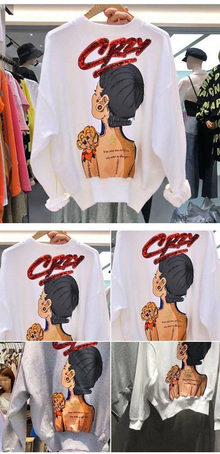 新品 ラウンドネックプリントサイドジッパーセーター 大人女子☆ ロング ⦿韓国 オルチャン K-pop アイドル ジャケット スーツ ワンピース カーディガン ニット フーディー トレーナー キャミソール スカート シャツ ブラウス 5B3420091