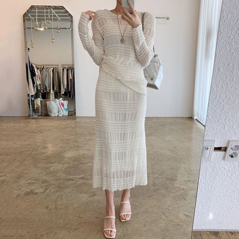 新品 ラウンドネックレースシャツブラウスロングスカート ステッチ ⦿韓国 オルチャン K-pop アイドル ジャケット スーツ ワンピース カーディガン ニット フーディー トレーナー キャミソール スカート シャツ ブラウス 5A9363351 | K clothig adult