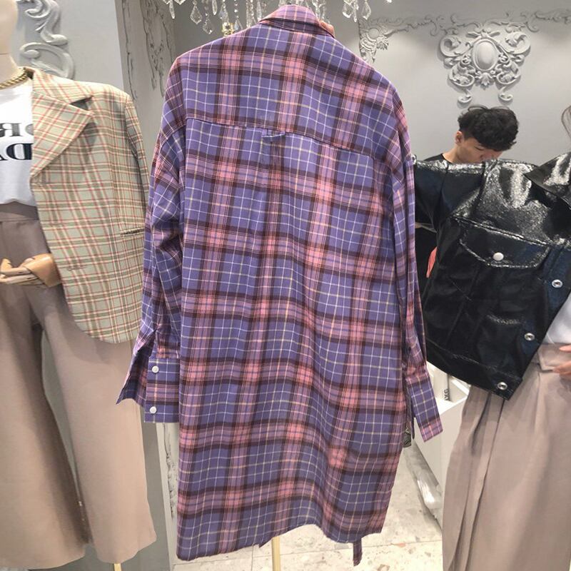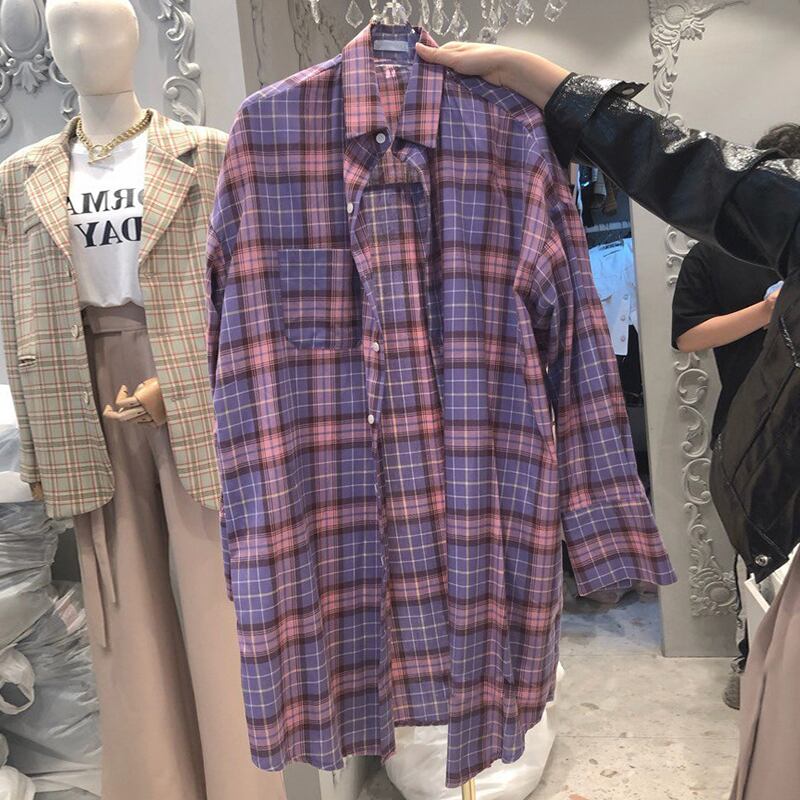 新品 シャツブラウスチェック柄カラー ロング ⦿韓国 オルチャン K-pop アイドル ジャケット スーツ ワンピース カーディガン ニット フーディー トレーナー キャミソール スカート シャツ ブラウス 5B5237518 | K clothig adult
