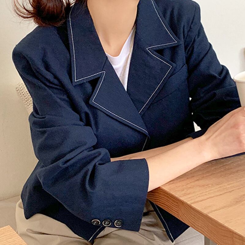 新品 ラインステッチショート丈ジャケット コート ⦿韓国 オルチャン K-pop アイドル ジャケット スーツ ワンピース カーディガン ニット フーディー トレーナー キャミソール スカート シャツ ブラウス 5A0524289 | K clothig adult