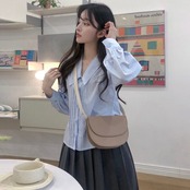 新品 ブループリーツシャツブラウスハイウェストスカート ⦿韓国 オルチャン K-pop アイドル ジャケット スーツ ワンピース カーディガン ニット フーディー トレーナー キャミソール スカート シャツ ブラウス 5A0972854 | K clothig adult