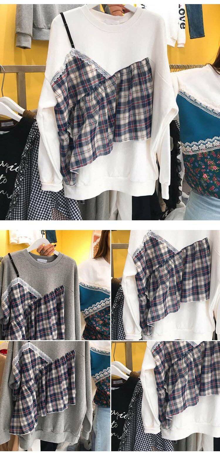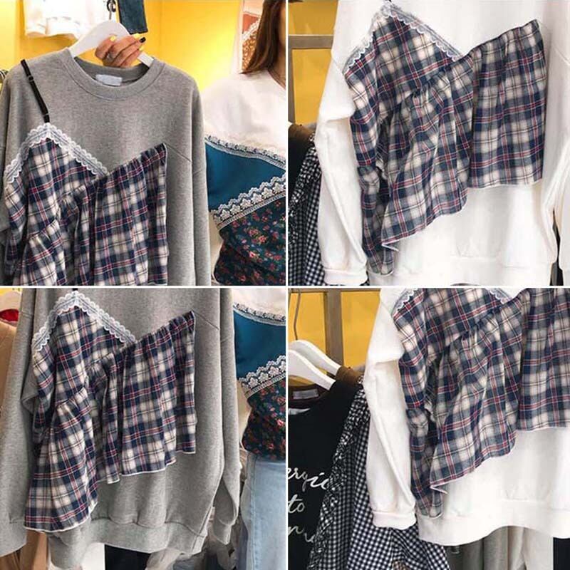 新品 チェック柄レースプルオーバー セーター トップス ステッチ ⦿韓国 オルチャン K-pop アイドル ジャケット スーツ ワンピース カーディガン ニット フーディー トレーナー キャミソール スカート シャツ ブラウス 5B6858591