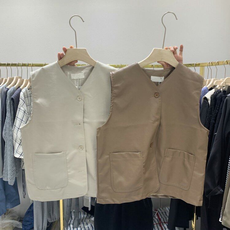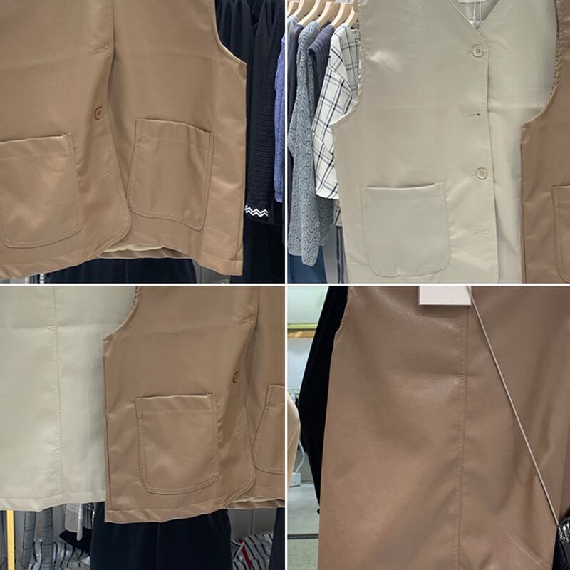 新品 ソリッド カラーノースリーブレザージャケット ソリッドカラー ⦿韓国 オルチャン K-pop アイドル ジャケット スーツ ワンピース カーディガン ニット フーディー トレーナー キャミソール スカート シャツ ブラウス 5B8817753