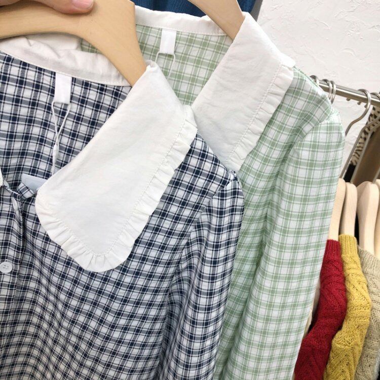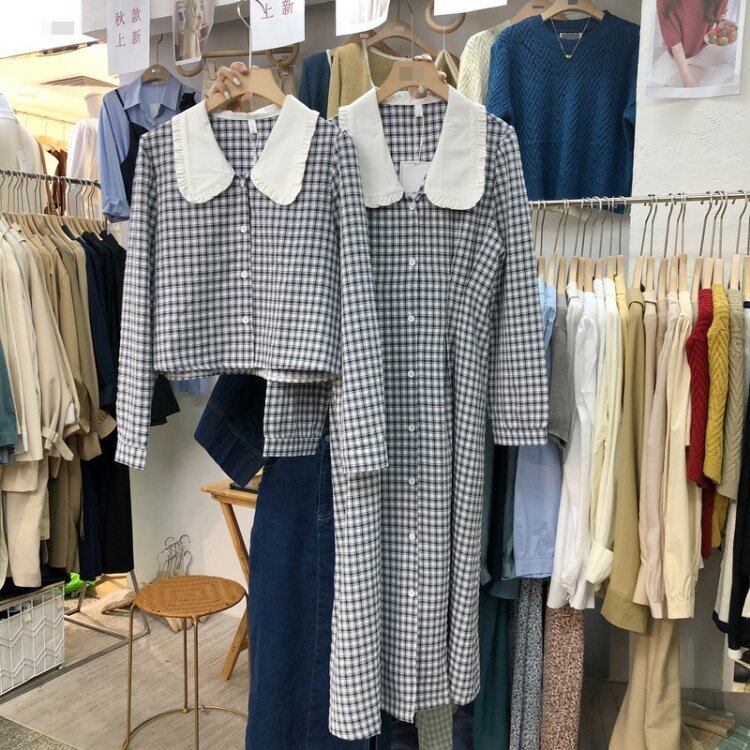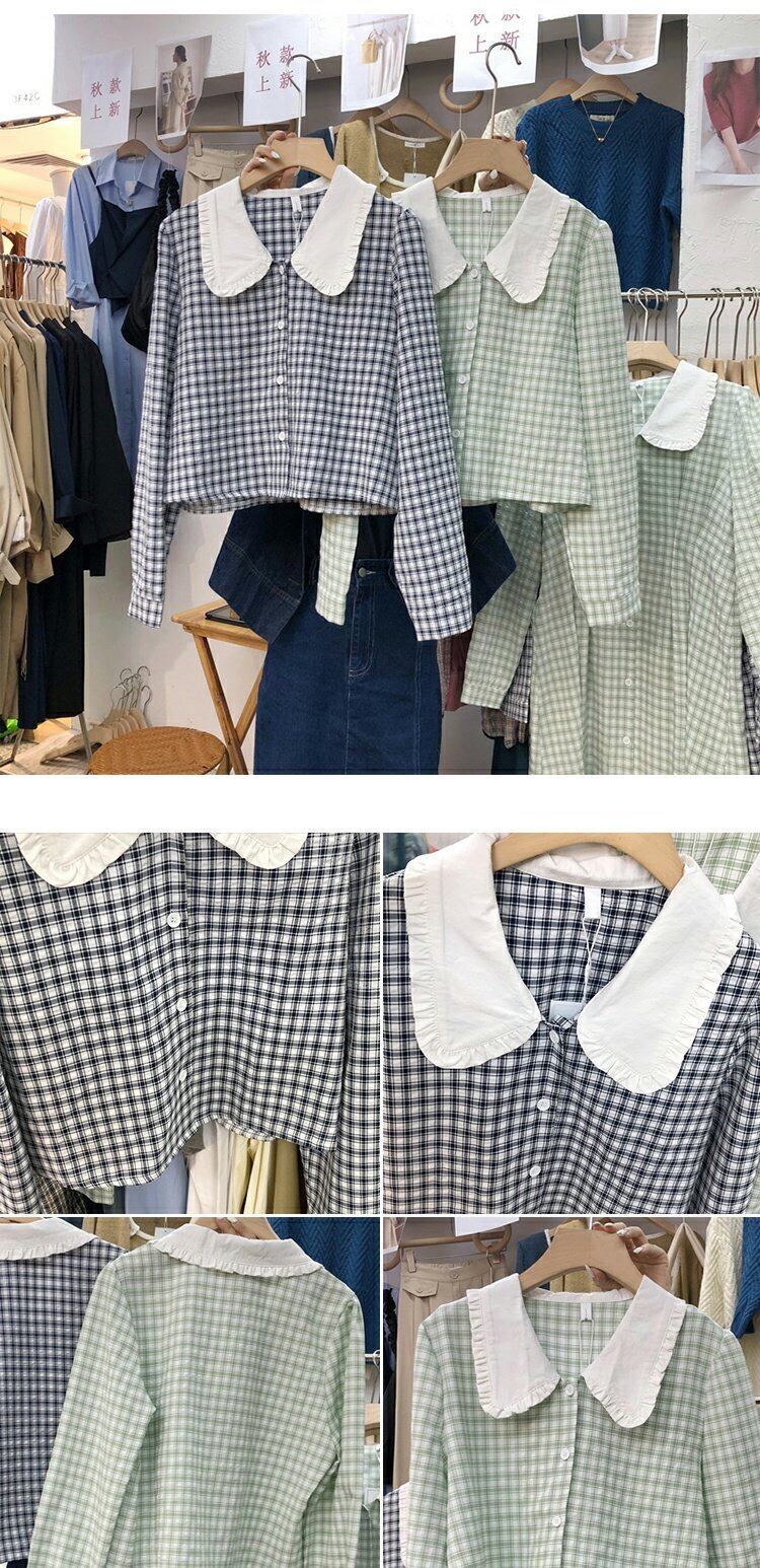 新品 チェック柄カラー♥カワイイ♥ショートトップス スウィート ⦿韓国 オルチャン K-pop アイドル ジャケット スーツ ワンピース カーディガン ニット フーディー トレーナー キャミソール スカート シャツ ブラウス 5B3958610