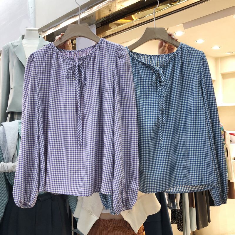 新品 チェック柄長袖スリーブトップス 大人女子☆ ロング ⦿韓国 オルチャン K-pop アイドル ジャケット スーツ ワンピース カーディガン ニット フーディー トレーナー キャミソール スカート シャツ ブラウス 5B7566229