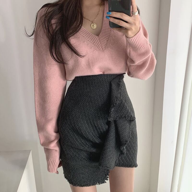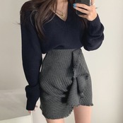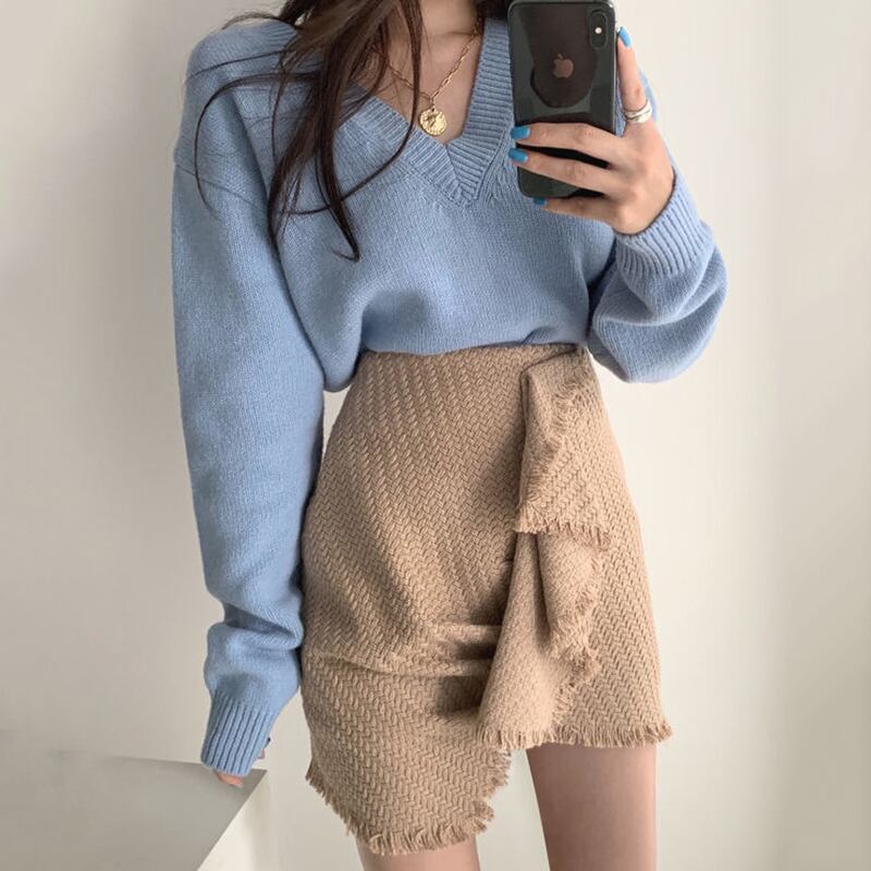 新品 ブルー♥カワイイ♥Vネックセーター スカート ⦿韓国 オルチャン K-pop アイドル ジャケット スーツ ワンピース カーディガン ニット フーディー トレーナー キャミソール スカート シャツ ブラウス 5A1720037 | K clothig adult