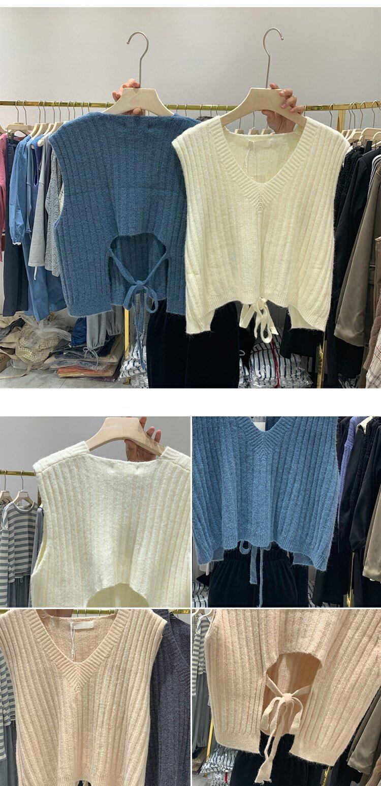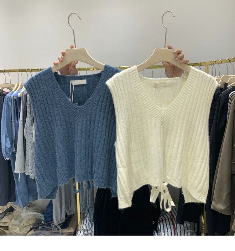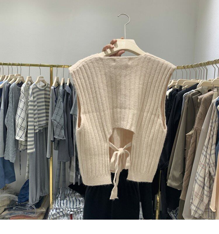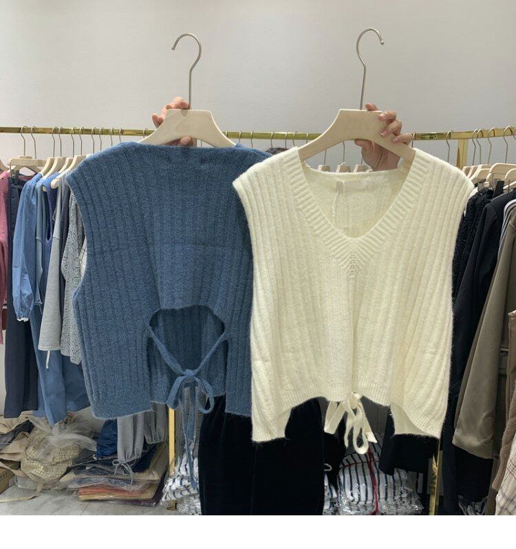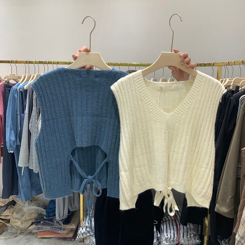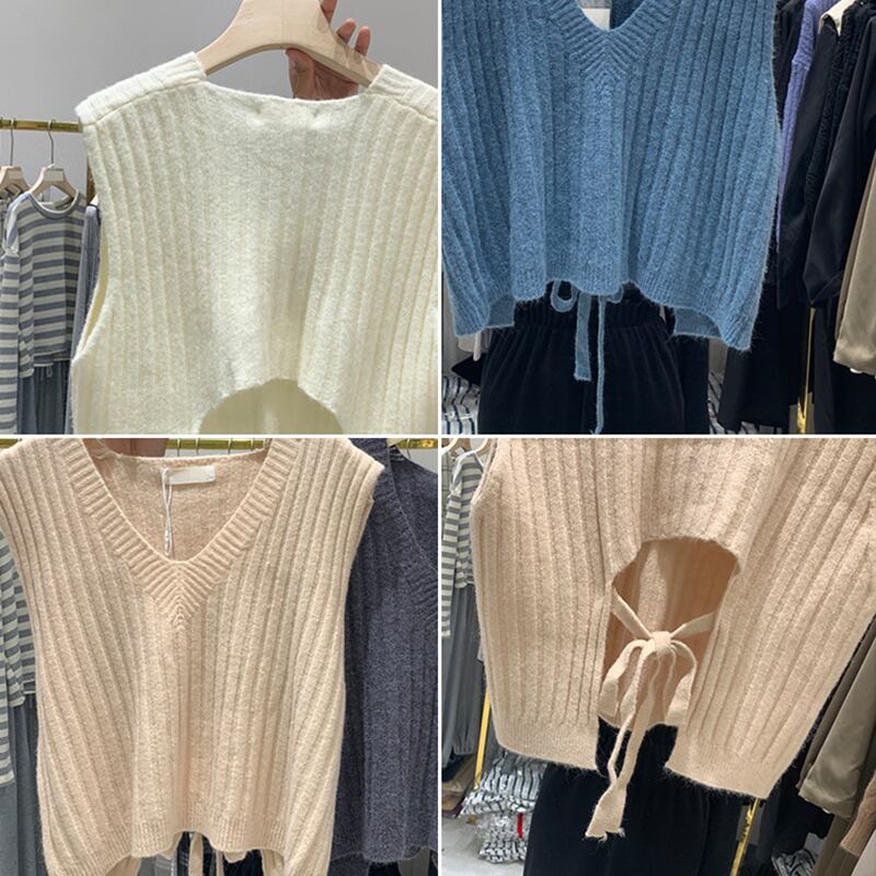 新品 オータムVネックノースリーブニットバック 秋物 ピュア ⦿韓国 オルチャン K-pop アイドル ジャケット スーツ ワンピース カーディガン ニット フーディー トレーナー キャミソール スカート シャツ ブラウス 5B3992676