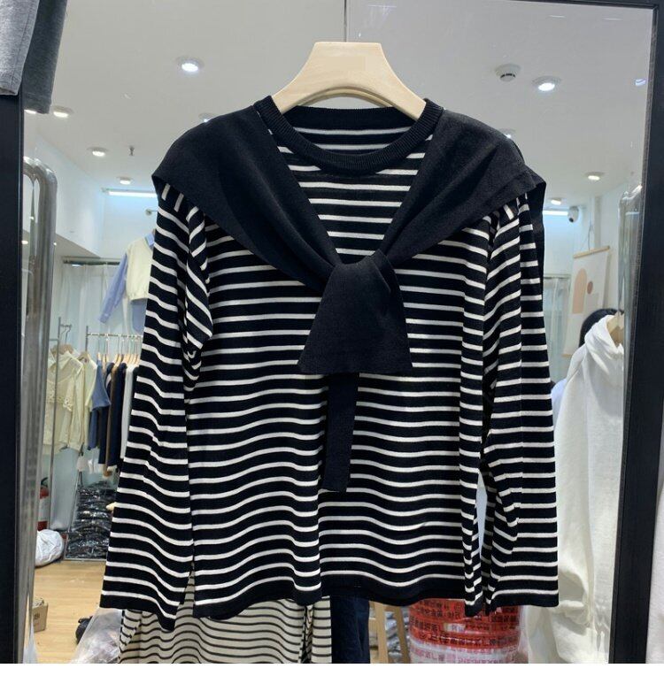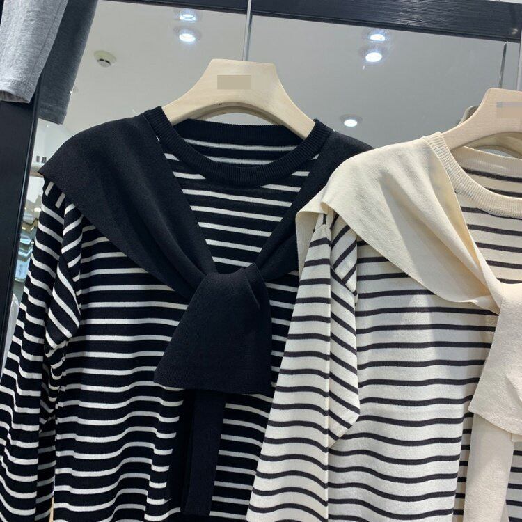 新品 ♡ラウンドネックストライプニットトップス ロング コットン ステッチ ⦿韓国 オルチャン K-pop アイドル ジャケット スーツ ワンピース カーディガン ニット フーディー トレーナー キャミソール スカート シャツ ブラウス 5B8749050 | K clothig adult