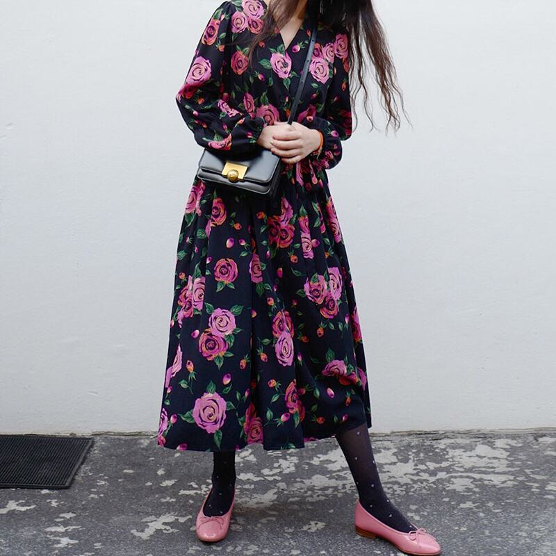 新品 スタンダード大人女子☆ ロング レトロ レース Vネック レースアップ フラワーデザイン ⦿韓国 オルチャン K-pop アイドル ジャケット スーツ ワンピース カーディガン ニット フーディー トレーナー キャミソール スカート シャツ ブラウス 5A7000673 | K clothig adult
