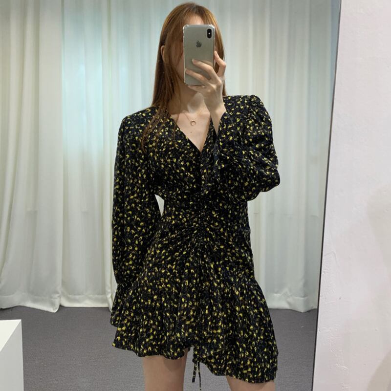 新品 Vネックギャザー★花柄 ⦿韓国 オルチャン K-pop アイドル ジャケット スーツ ワンピース カーディガン ニット フーディー トレーナー キャミソール スカート シャツ ブラウス 5A4032851