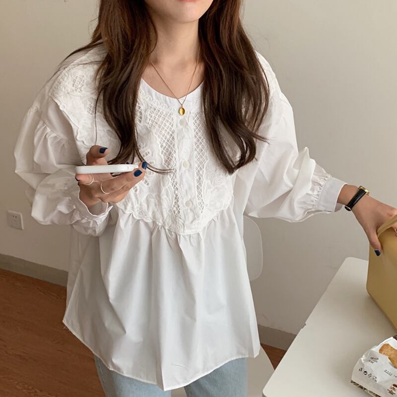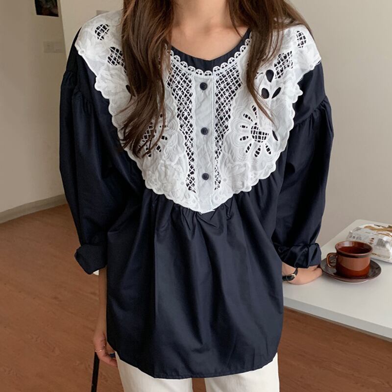 新品 スタンダードラウンドネックスリーブシャツブラウス レトロ ステッチ ⦿韓国 オルチャン K-pop アイドル ジャケット スーツ ワンピース カーディガン ニット フーディー トレーナー キャミソール スカート シャツ ブラウス 5A9595006 | K clothig adult