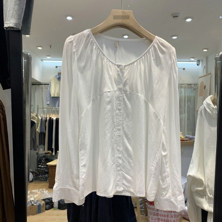 新品 ラウンドネックソリッド カラー♥カワイイ♥シャツブラウス ロング ソリッドカラー ⦿韓国 オルチャン K-pop アイドル ジャケット スーツ ワンピース カーディガン ニット フーディー トレーナー キャミソール スカート シャツ ブラウス 5B3001763