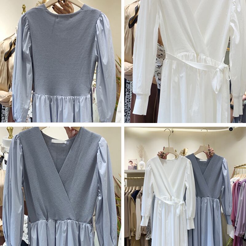 新品 Vネッククロスニットシャツブラウス ステッチ ⦿韓国 オルチャン K-pop アイドル ジャケット スーツ ワンピース カーディガン ニット フーディー トレーナー キャミソール スカート シャツ ブラウス 5B1375294