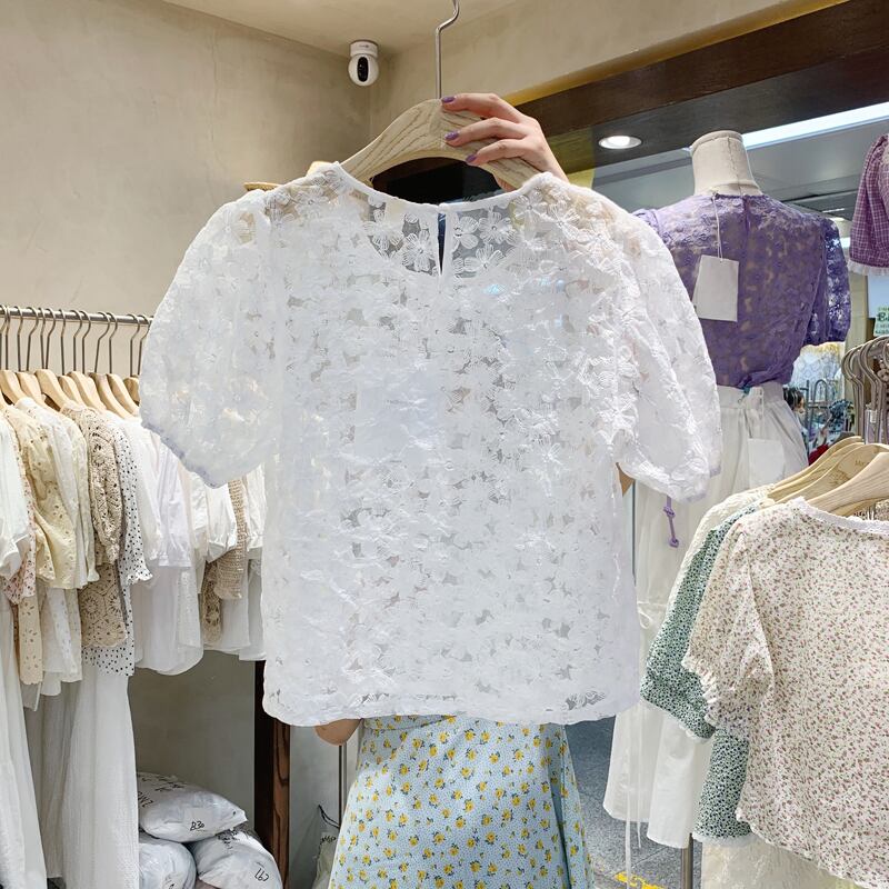 新品 スリーブ刺繍花柄プルオーバー シャツブラウス フラワーデザイン ⦿韓国 オルチャン K-pop アイドル ジャケット スーツ ワンピース カーディガン ニット フーディー トレーナー キャミソール スカート シャツ ブラウス 5B3017504