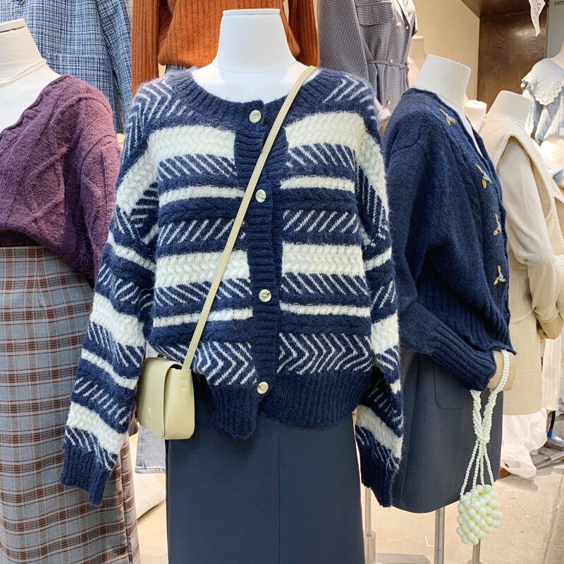 新品 ラウンドネックストライプセーター ジャケット ⦿韓国 オルチャン K-pop アイドル ジャケット スーツ ワンピース カーディガン ニット フーディー トレーナー キャミソール スカート シャツ ブラウス 5B2684310 | K clothig adult