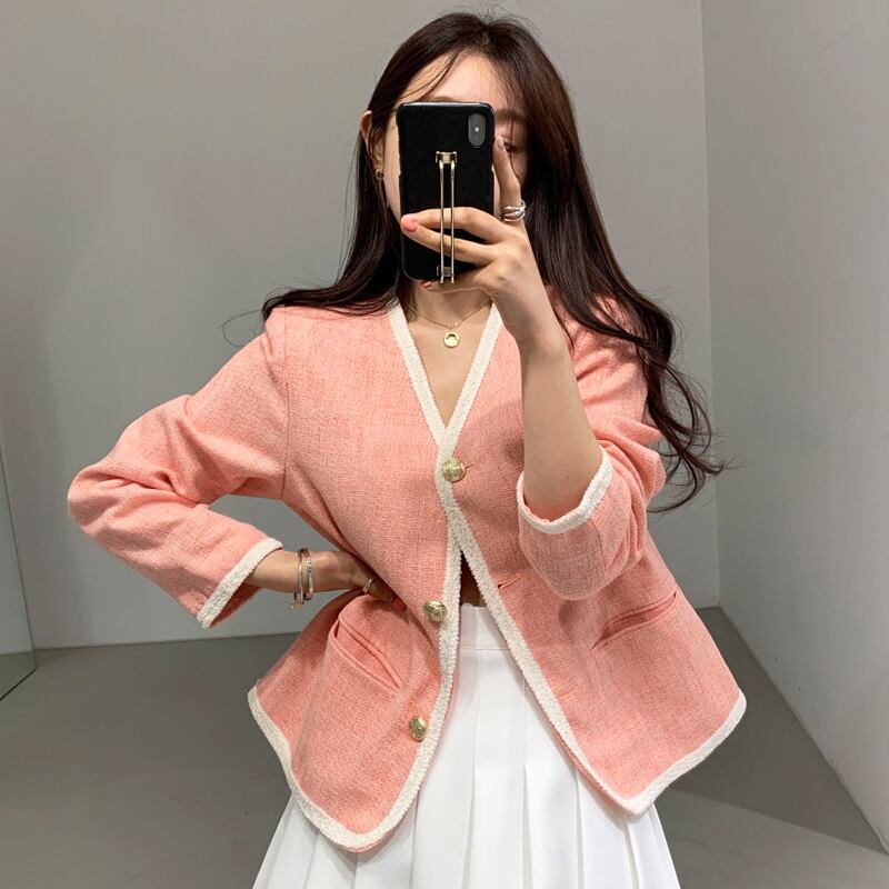 新品 ♥カワイイ♥Vネックカラーカジュアルジャケット ショートコート ロング ⦿韓国 オルチャン K-pop アイドル ジャケット スーツ ワンピース カーディガン ニット フーディー トレーナー キャミソール スカート シャツ ブラウス 5A0173459 | K clothig adult