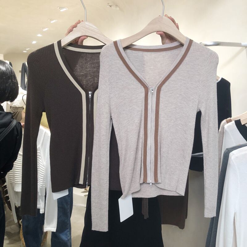 新品 Vネックジッパースリムトップス ロング ⦿韓国 オルチャン K-pop アイドル ジャケット スーツ ワンピース カーディガン ニット フーディー トレーナー キャミソール スカート シャツ ブラウス 5B3008834