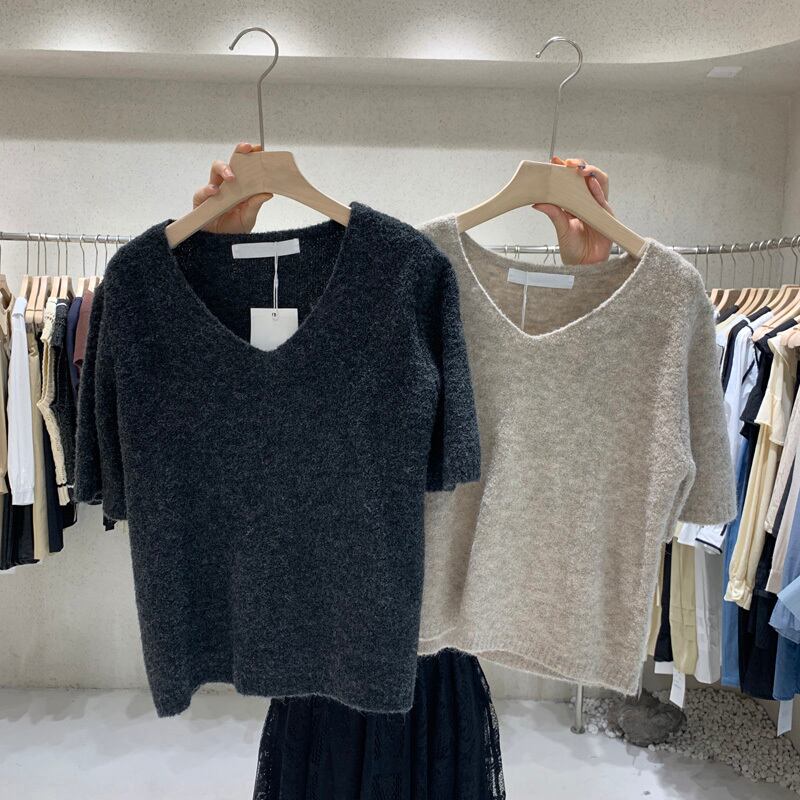 新品 ソリッド カラー半袖スリーブVネックトップス ショート ソリッドカラー ⦿韓国 オルチャン K-pop アイドル ジャケット スーツ ワンピース カーディガン ニット フーディー トレーナー キャミソール スカート シャツ ブラウス 5B5117180 | K clothig adult