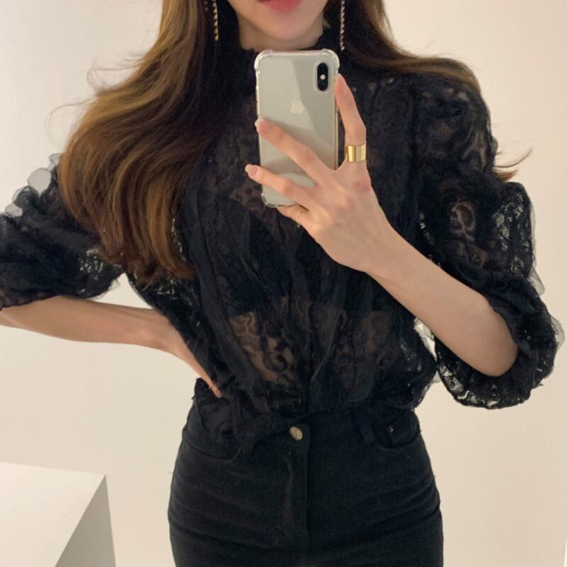 新品 ♡レーススリーブシャツブラウス ステッチ ⦿韓国 オルチャン K-pop アイドル ジャケット スーツ ワンピース カーディガン ニット フーディー トレーナー キャミソール スカート シャツ ブラウス 5A2600088 | K clothig adult