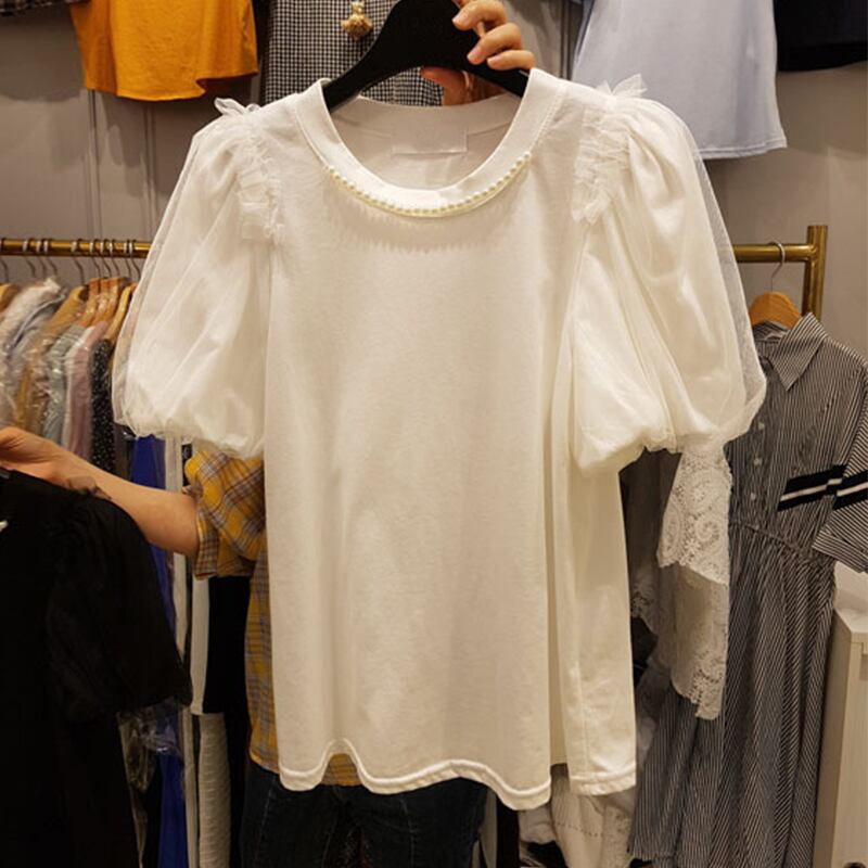 新品 メッシュカラーパールラウンドネックブラウス 大人女子☆ ピュア 真珠 ⦿韓国 オルチャン K-pop アイドル ジャケット スーツ ワンピース カーディガン ニット フーディー トレーナー キャミソール スカート シャツ ブラウス 5B1430967 | K clothig adult
