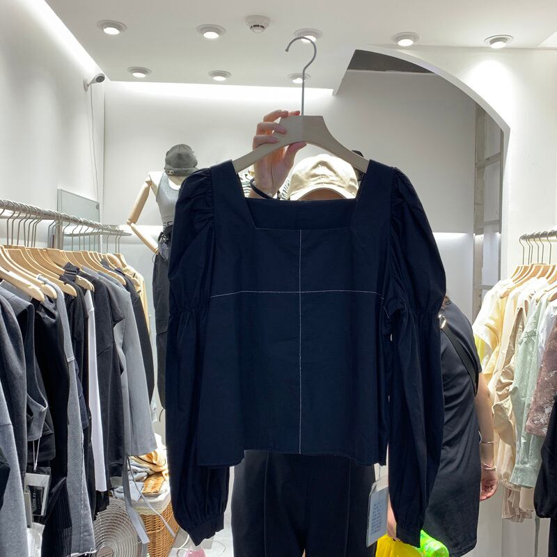 新品 カラーストレッチ長袖スリーブショートシャツブラウス ロング エラスティック 伸縮 ピュア スクウェア ステッチ ⦿韓国 オルチャン K-pop アイドル ジャケット スーツ ワンピース カーディガン ニット フーディー トレーナー キャミソール スカート シャツ ブラウス 5B9161325