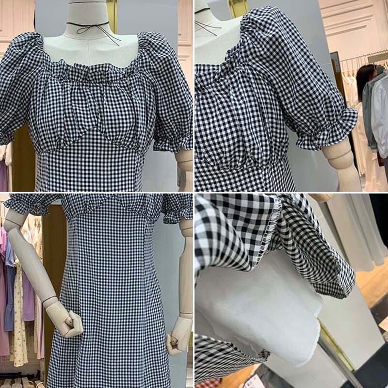 新品 ♡チェック柄スリーブ★♥カワイイ♥ワンピーススカート 大人女子☆ コットン スウィート ⦿韓国 オルチャン K-pop アイドル ジャケット スーツ ワンピース カーディガン ニット フーディー トレーナー キャミソール スカート シャツ ブラウス 5B2941896