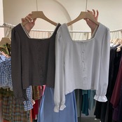新品 スリムチェック柄ショートトップス ロング スクウェア ⦿韓国 オルチャン K-pop アイドル ジャケット スーツ ワンピース カーディガン ニット フーディー トレーナー キャミソール スカート シャツ ブラウス 5B5491188