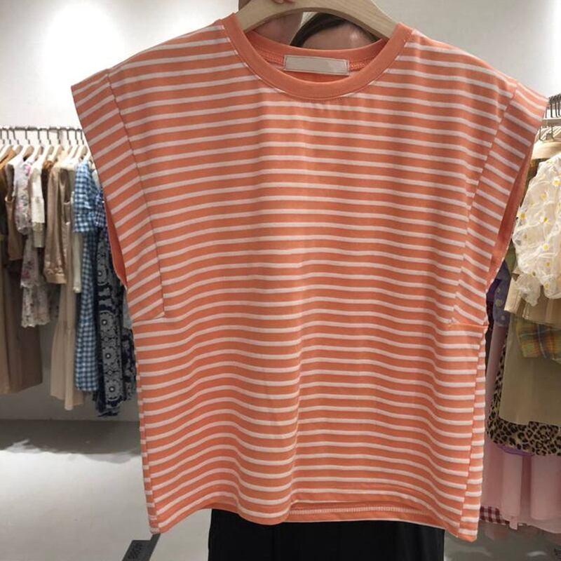 新品 ストライプラウンドネックノースリーブTシャツ 大人女子☆カジュアルトップス ⦿韓国 オルチャン K-pop アイドル ジャケット スーツ ワンピース カーディガン ニット フーディー トレーナー キャミソール スカート シャツ ブラウス 5B9567330