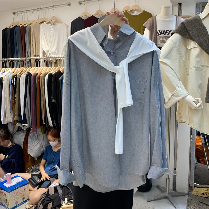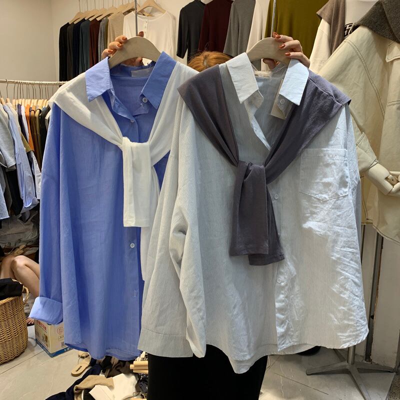 新品 ♡ストライプシャツブラウス ロング ⦿韓国 オルチャン K-pop アイドル ジャケット スーツ ワンピース カーディガン ニット フーディー トレーナー キャミソール スカート シャツ ブラウス 5B5324664 | K clothig adult