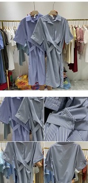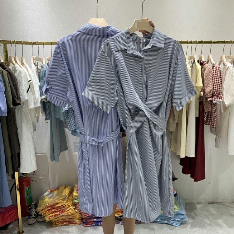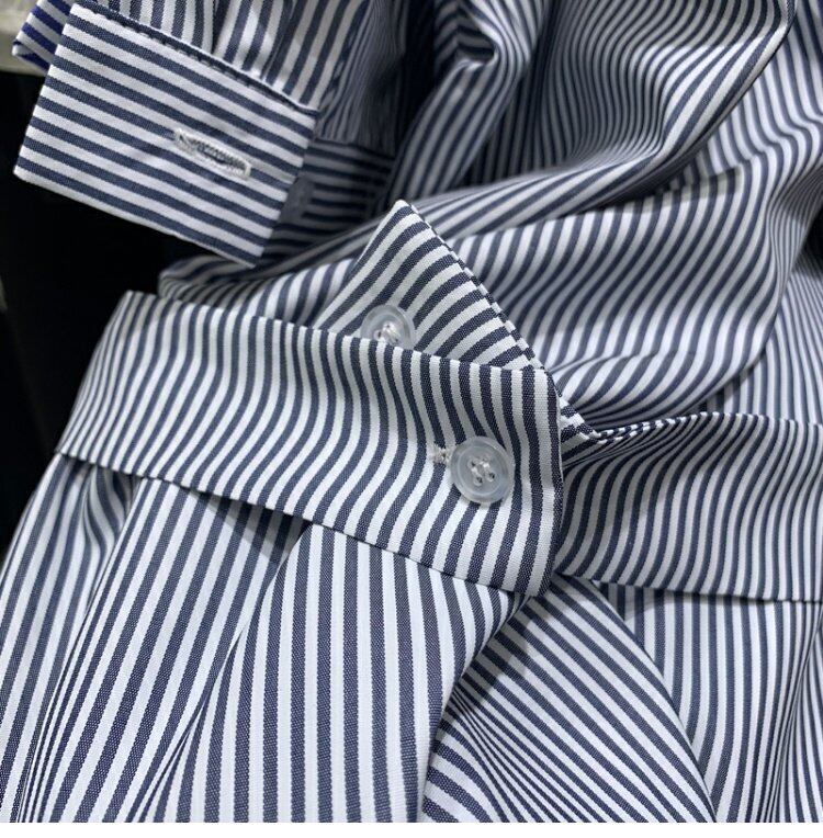 新品 ストライプシャツブラウス ⦿韓国 オルチャン K-pop アイドル ジャケット スーツ ワンピース カーディガン ニット フーディー トレーナー キャミソール スカート シャツ ブラウス 5B5306406
