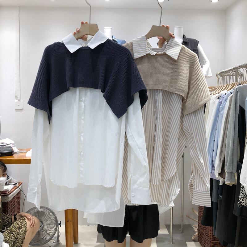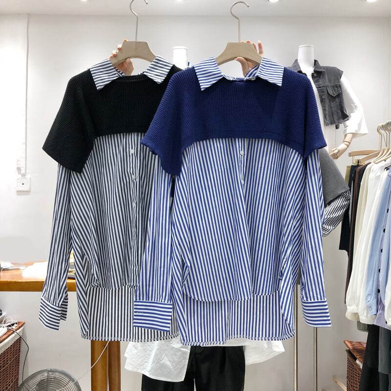新品 ストライプカラーシャツブラウスラウンドネックプルオーバー ⦿韓国 オルチャン K-pop アイドル ジャケット スーツ ワンピース カーディガン ニット フーディー トレーナー キャミソール スカート シャツ ブラウス 5B8084965 | K clothig adult