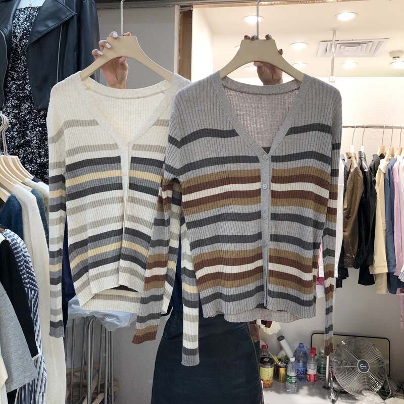 新品 カラーストライプVネックニットトップス 大人女子☆ ピュア ⦿韓国 オルチャン K-pop アイドル ジャケット スーツ ワンピース カーディガン ニット フーディー トレーナー キャミソール スカート シャツ ブラウス 5B0591241 | K clothig adult