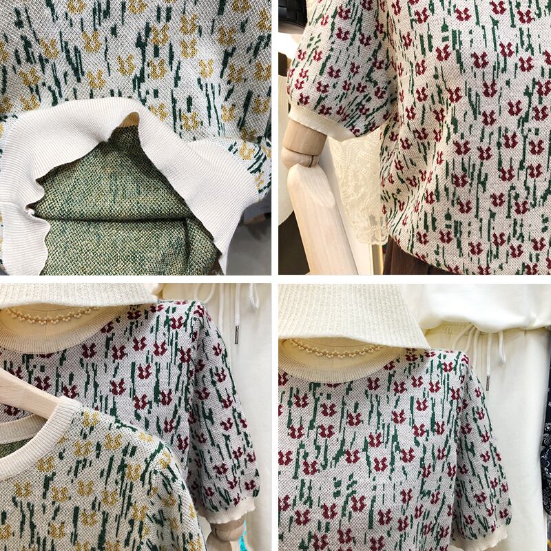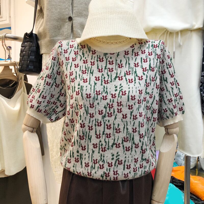 新品 花柄ニットプルオーバー ブラウス ⦿韓国 オルチャン K-pop アイドル ジャケット スーツ ワンピース カーディガン ニット フーディー トレーナー キャミソール スカート シャツ ブラウス 5B5702504