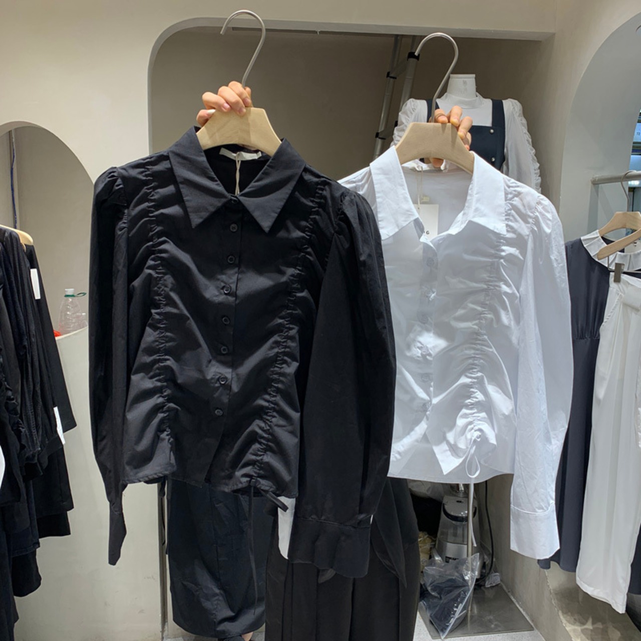 新品 ♡ソリッド カラーギャザープリーツシャツブラウス ロング ソリッドカラー ⦿韓国 オルチャン K-pop アイドル ジャケット スーツ ワンピース カーディガン ニット フーディー トレーナー キャミソール スカート シャツ ブラウス 5B7895075
