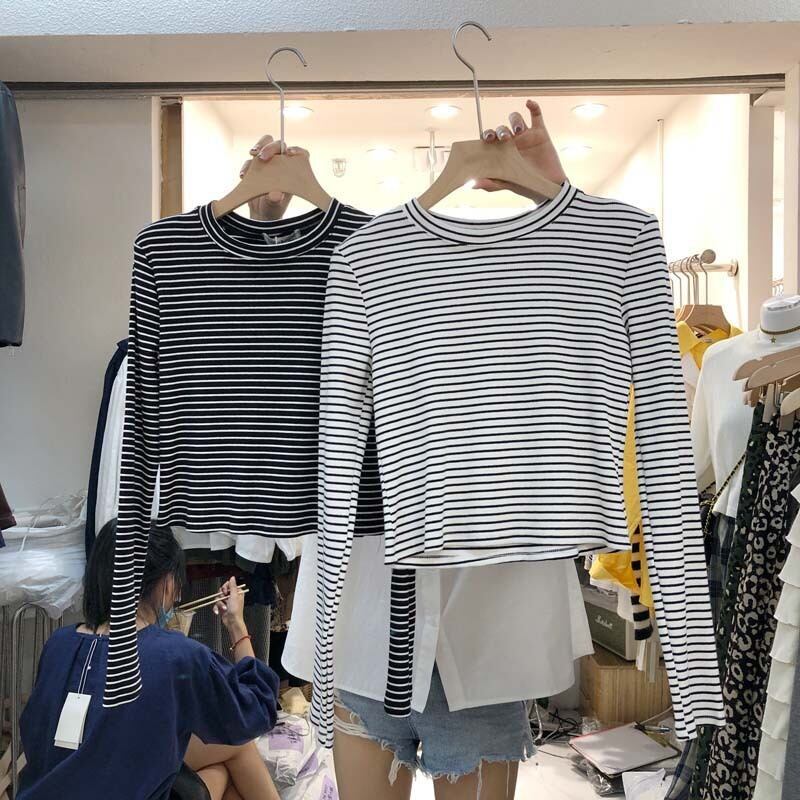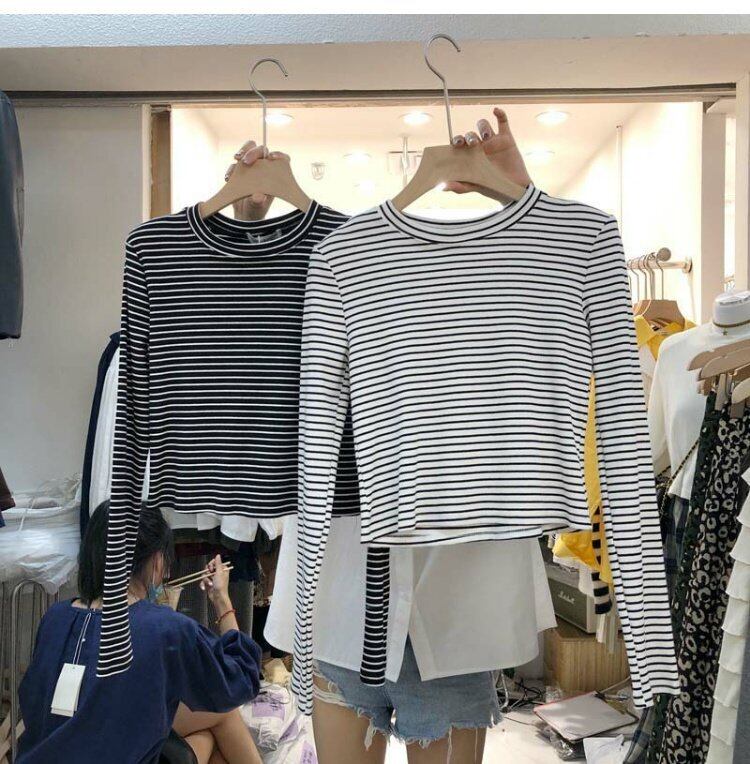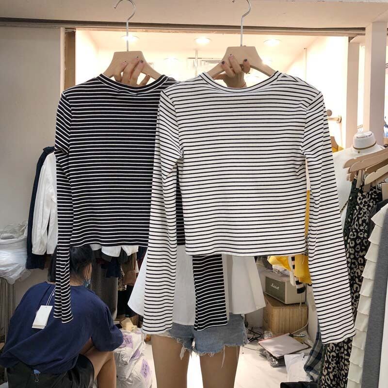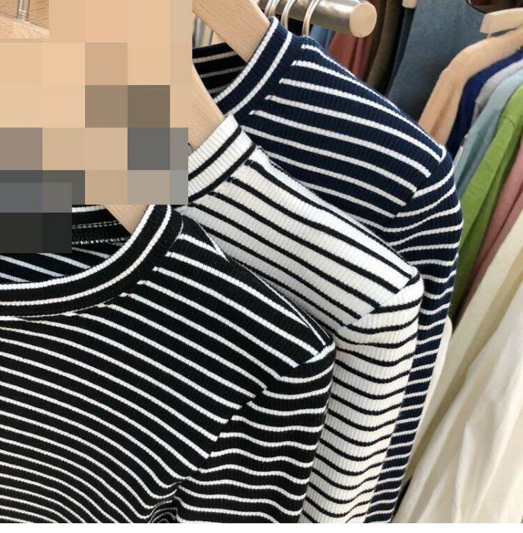 新品 ストライプ ラウンドネック Tシャツ ⦿韓国 オルチャン K-pop アイドル ジャケット スーツ ワンピース カーディガン ニット フーディー トレーナー キャミソール スカート シャツ ブラウス 5B3919111