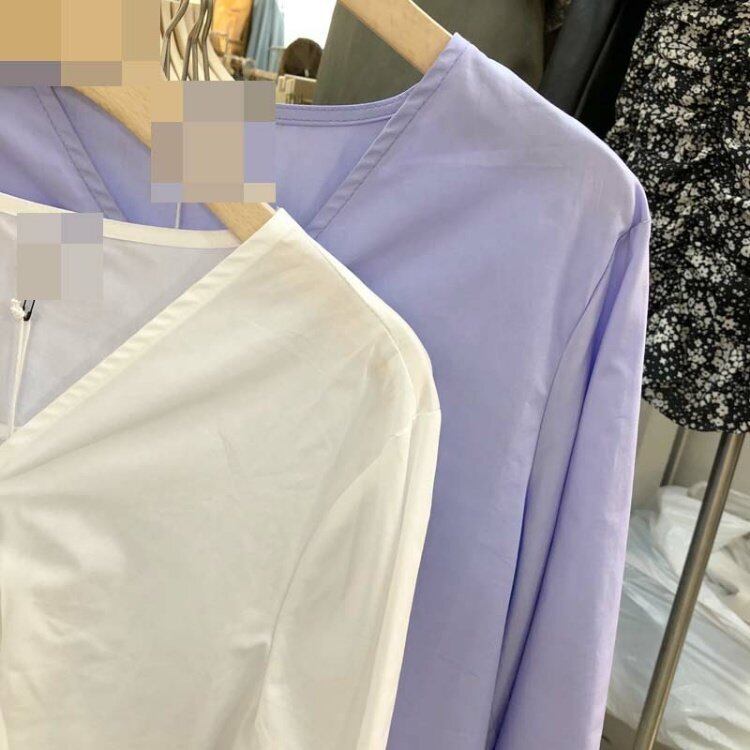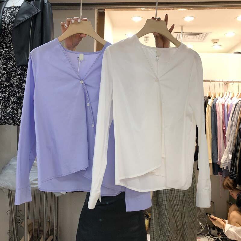 新品 カラーVネック♥カワイイ♥シャツブラウス スウィート ピュア ⦿韓国 オルチャン K-pop アイドル ジャケット スーツ ワンピース カーディガン ニット フーディー トレーナー キャミソール スカート シャツ ブラウス 5B0393504