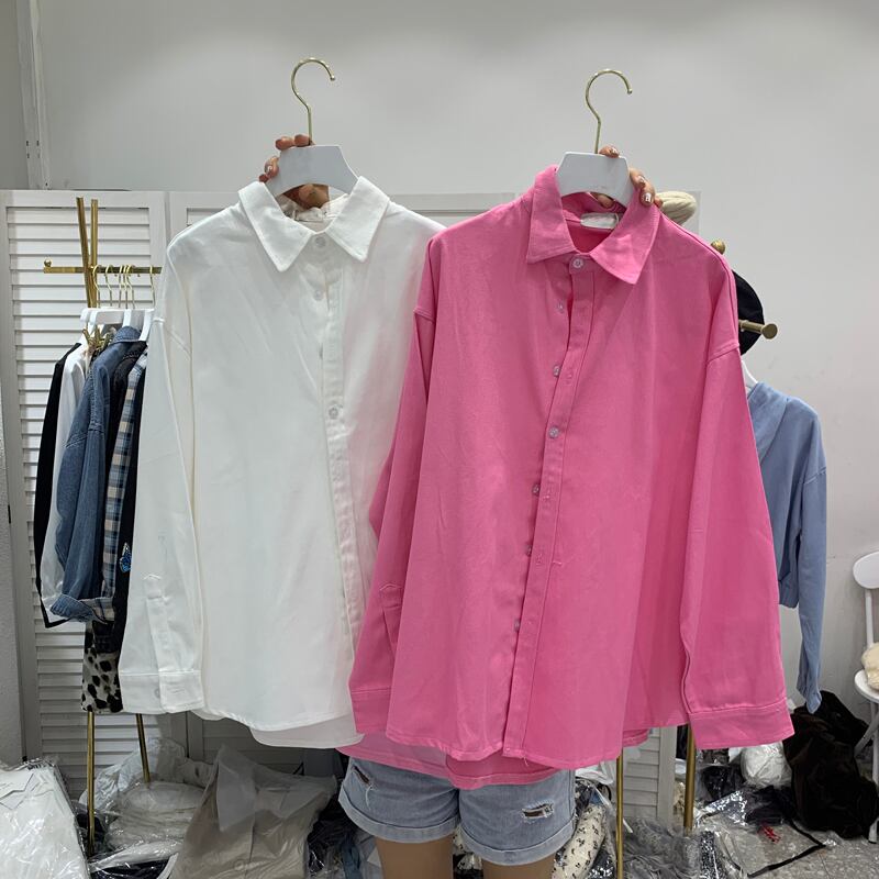 新品 ソリッド カラーシャツブラウス ロング コットン ソリッドカラー ⦿韓国 オルチャン K-pop アイドル ジャケット スーツ ワンピース カーディガン ニット フーディー トレーナー キャミソール スカート シャツ ブラウス 5B7408676