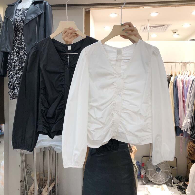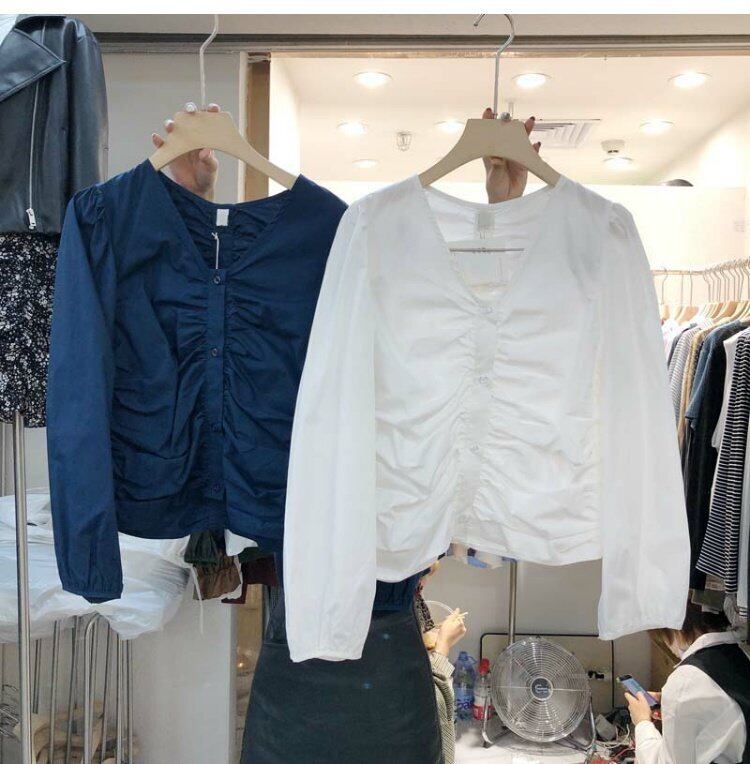 新品 カラーVネックプリーツブラウス スウィート ピュア ⦿韓国 オルチャン K-pop アイドル ジャケット スーツ ワンピース カーディガン ニット フーディー トレーナー キャミソール スカート シャツ ブラウス 5B2485144 | K clothig adult
