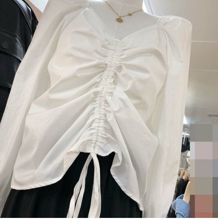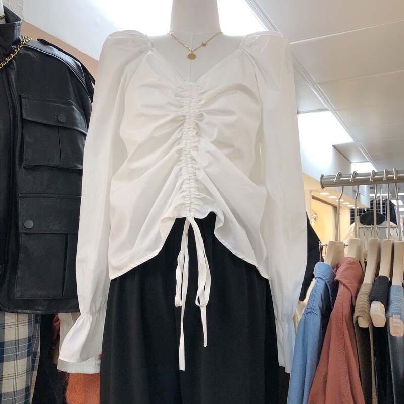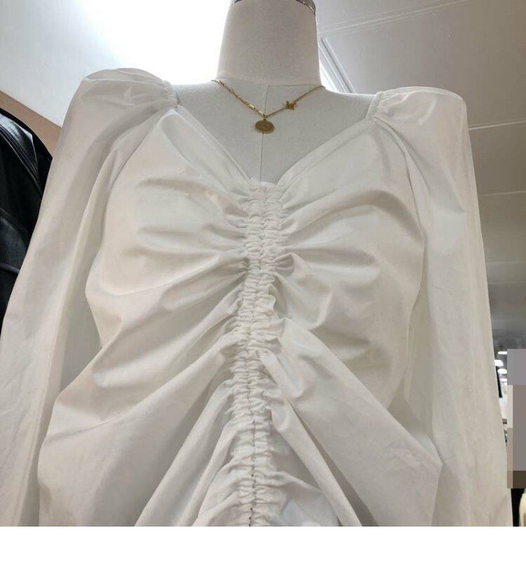 新品 カジュアルカラーVネックギャザープリーツスリーブブラウス 大人女子☆ スウィート ピュア ⦿韓国 オルチャン K-pop アイドル ジャケット スーツ ワンピース カーディガン ニット フーディー トレーナー キャミソール スカート シャツ ブラウス 5B5097242