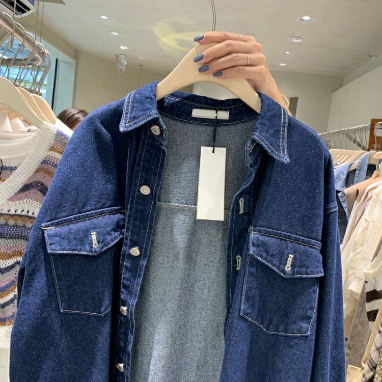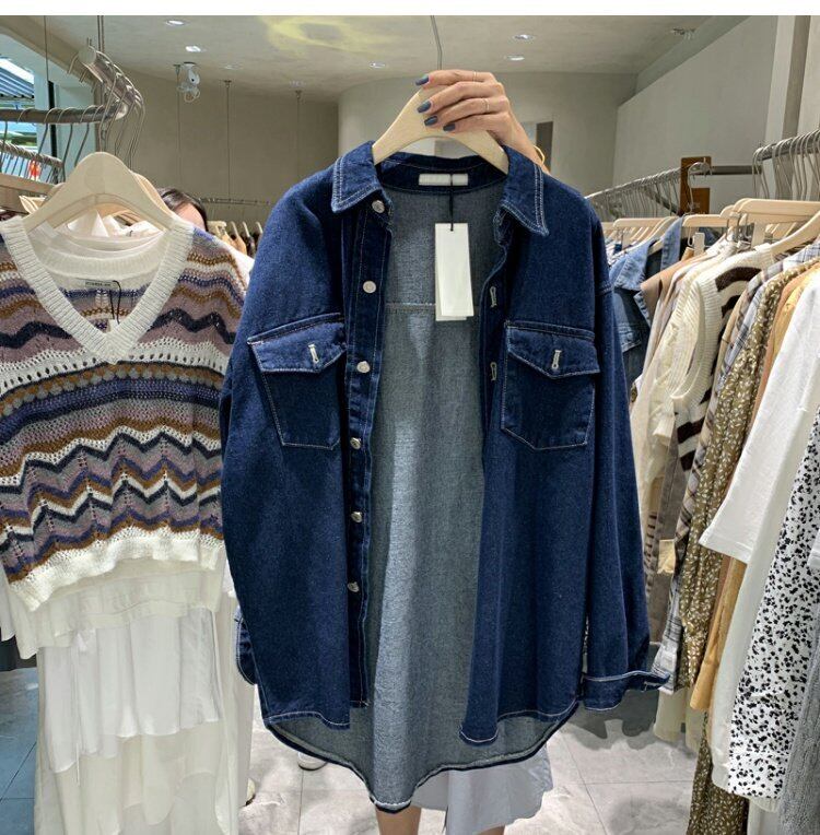 新品 ダークブルーシャツブラウスジャケット ロング ⦿韓国 オルチャン K-pop アイドル ジャケット スーツ ワンピース カーディガン ニット フーディー トレーナー キャミソール スカート シャツ ブラウス 5B2260407